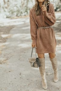- Why It Works: A sweater dress is a one-piece wonder that combines comfort and elegance. Opt for a midi or knee-length dress in a neutral or seasonal color like olive, rust, or burgundy.